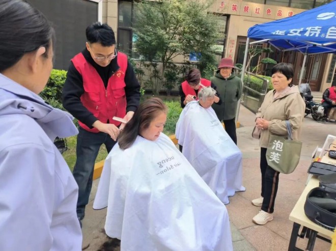 活动邀请专业发型师为小区内老人免费理发剪。经过细致修剪后,老人们精神面貌也焕然一新,脸上洋溢着满意的笑容。