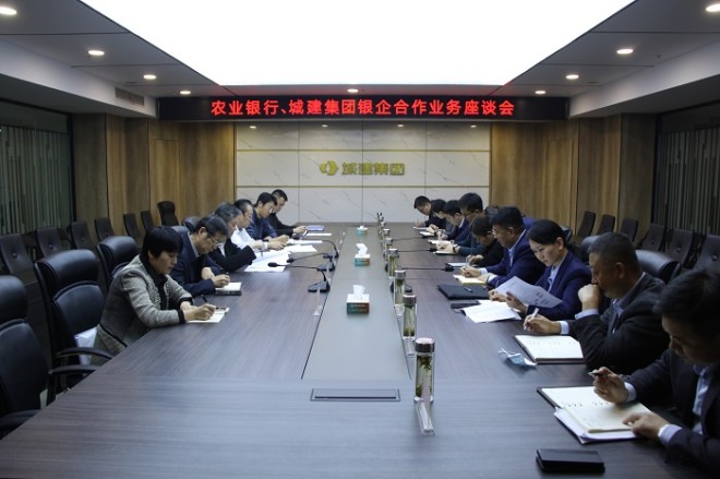 10月30日,农业银行与城建集团在城建集团二楼会议室开展银企合作业务座谈。农业银行省行乡村振兴部经理毛颖新,枣庄分行党委委员、副行长刘化伟,滕州支行党委书记、行长王宁;城建集团党委书记、董事长孙彦强,党委副书记、总经理何洪强及相关工作人员参加。