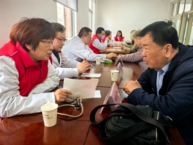 活动当天,来自人民医院心血管内科、内分泌科、关节科、神经内科、中医科等领域专家团队早早来到现场,摆放好各类便携式医疗设备。老干部们在工作人员的热情引导下,有序进行血压、血糖测量等基础检查。