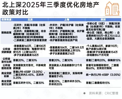 2025年8-9月,北京、上海、深圳曾先后调整限购政策。三城均采用“分区域差异化松绑”策略,但宽松力度与范围各有侧重。