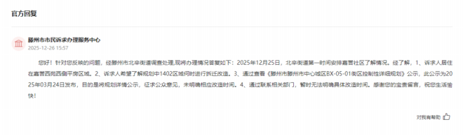 您好!针对您反映的问题,经滕州市北辛街道调查处理,现将办理情况答复如下:
