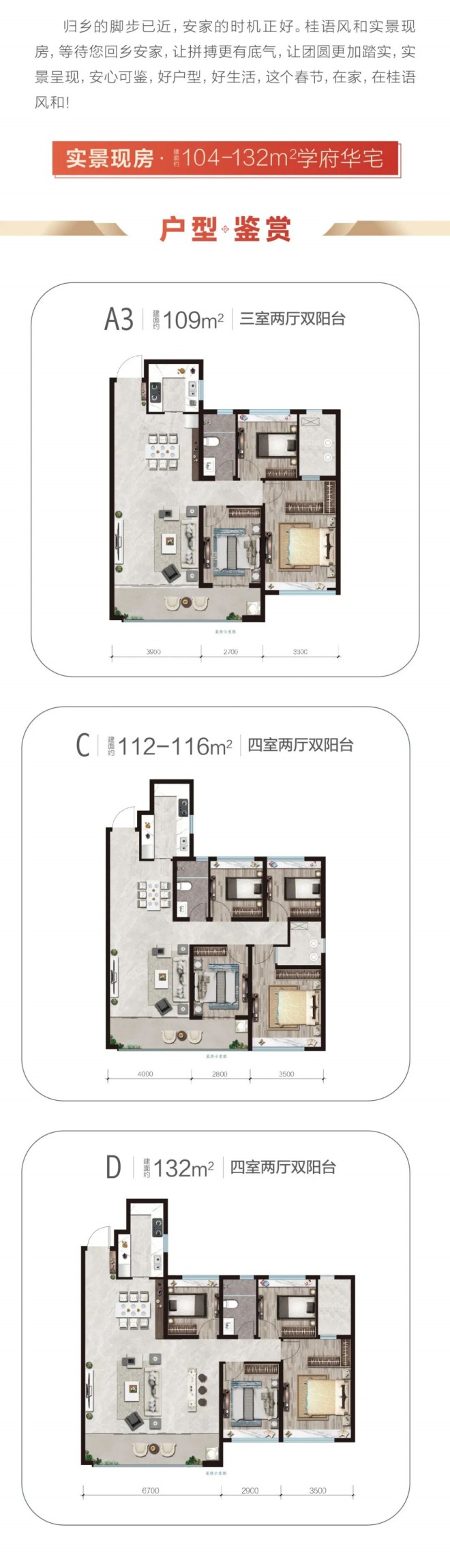 3、本宣传资料内提到的商品房面积均为建筑面积,特别说明的除外;本宣传资料所涉及的户型仅供示意参考,所标尺寸面积、室内装修设计方案仅供参考,非实际交楼衡量之基准;相同户型因楼栋、单元或楼层不同,局部结构、面积、尺寸、管线布置等可能存在差异,具体以《商品房买卖合同》为准;