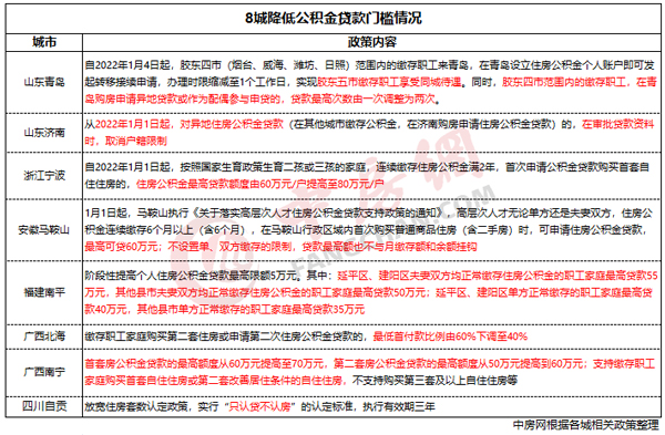 据中房网不完全统计,截至1月25日,已有济南、青岛、宁波、马鞍山、南平、北海、南宁和自贡等8地的住房公积金新政落地实施。