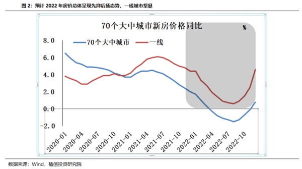 结合过去类似周期的房价表现,预计本轮房价的拐点大致在三季度左右,全年新房价格涨幅可能从2021年末的2%降至0.8%,二手房价格涨幅从1%降至0.1%。一线城市房价表现相对坚挺,到年末新房价格涨幅可能达到4.6%,略高于2021年的4.4%,二手房价格涨幅在3%左右,较2021年的5.3%有一定程度的回落。