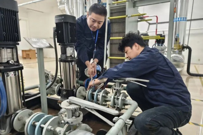设备检修与系统调试是保障供暖质量的关键。在信华城绣园小区换热站,工作人员正对站内的换热机组进行检修,确保采暖期设备正常运行。工作人员表示,现在正结合系统注水工作进一步排查漏点,为今冬供热系统安全稳定运行奠定坚实基础。