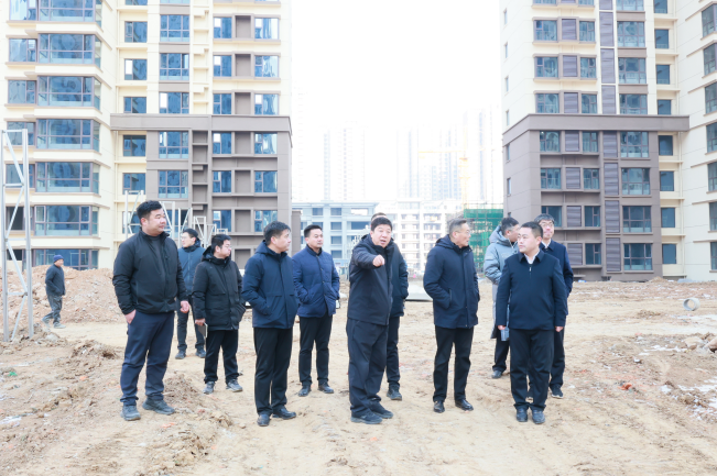 马培安一行来到新悦城小区项目现场,实地查看项目工程进度、施工质量管控、安全生产落实及水电气暖等配套设施建设推进情况,听取了相关情况汇报,并针对项目推进过程中存在的问题提出指导性意见。