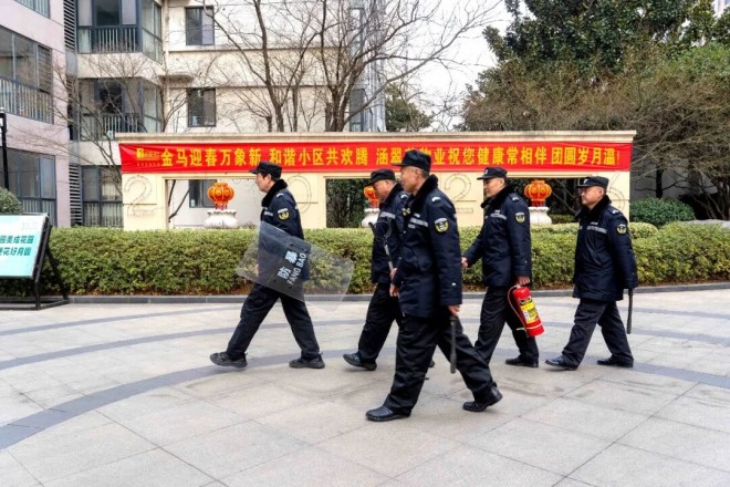 他们是园区的“守护者”,亦是团圆的“守护者”。春节期间,园区保安24小时坚守门岗,寒风中挺拔的身影,是园区最安心的风景。严格排查进出车辆、仔细核实来访人员,昼夜巡查园区角落、排查消防隐患,不放过任何一个细节,不松懈任何一个时刻。他们用警惕与坚守,阻挡风险、守护平安,用一句句“新年好,请登记”,传递着新春的问候与责任,让业主的团圆时光,多一份安心,少一份顾虑。